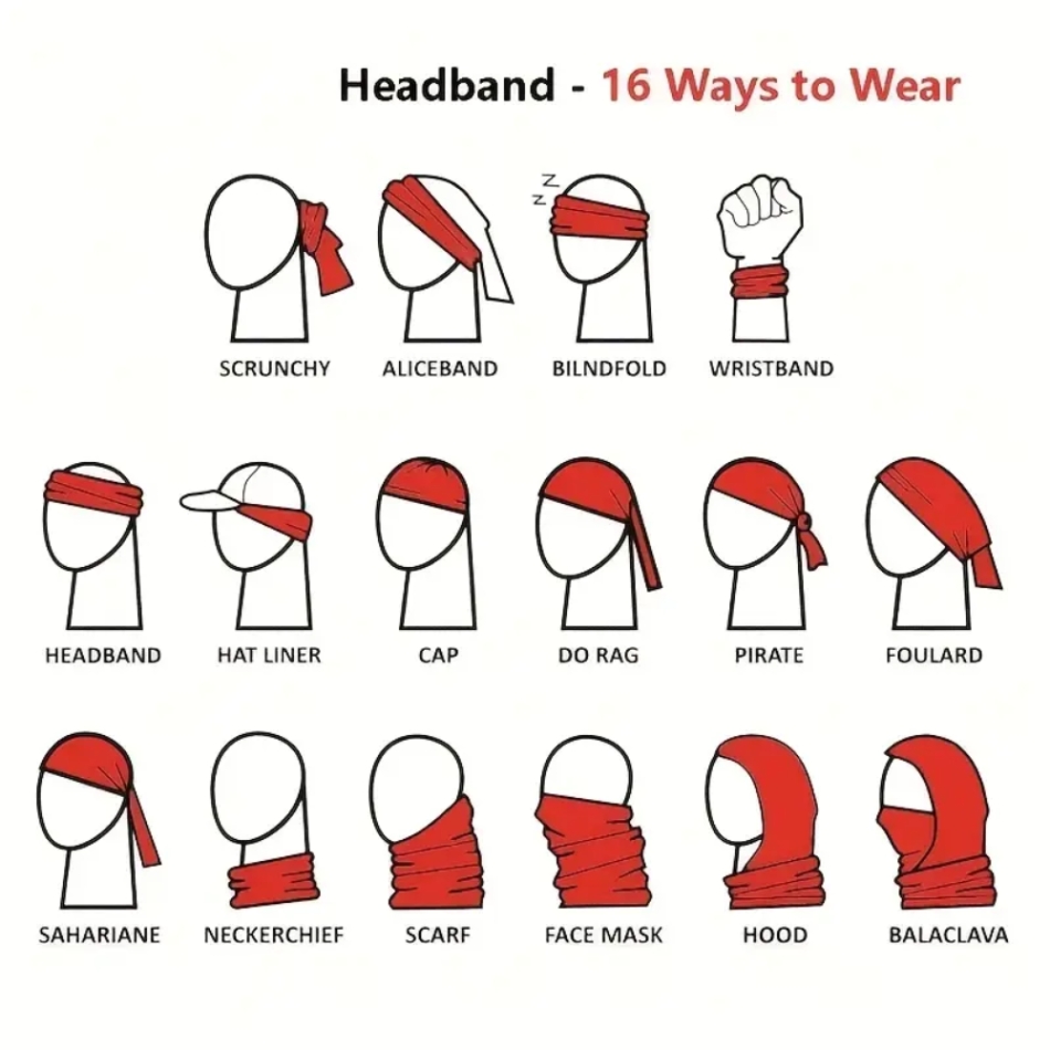kültéri többszínű multifunkcionális négyzet alakú sál stílusú légáteresztő, porálló, szélálló, napálló maszk, alkalmas tevékenységekhez, mint például kerékpározás, kempingezés, túrázás és horgászat.